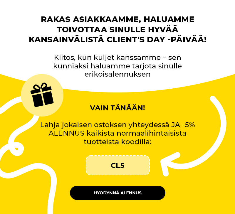 Tuotteita ja lahjoja on saatavilla rajallinen määrä. Tarjouksia ja alennuksia ei voi yhdistää. Tarjous koskee ylläpitäjän hyväksymällä listalla mainittuja tuotteita. Yritys pidättää oikeuden muuttaa tämän kampanjan ehtoja milloin tahansa. Tarjous on voimassa 20.3.2026 klo 9.00 asti.